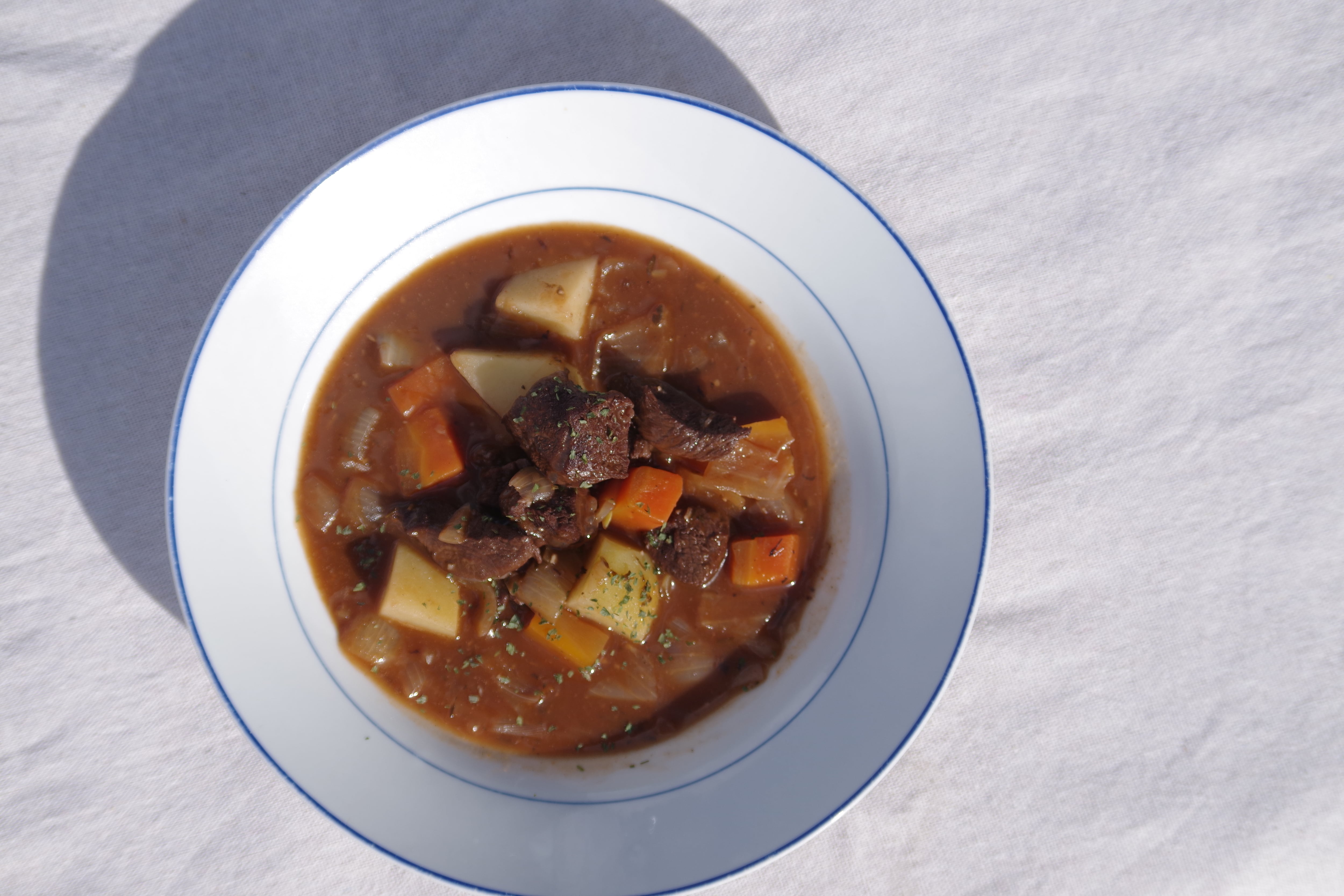 鹿のモモ肉を赤ワインでじっくり煮込み、柔らかく芳醇な味わいに仕上げました。